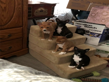 All puppies are raised IN our home as part of the family until they are ready for their fur-ever homes. They have daily interactions with their littermates, both parents, another adult female Basenji, 2 cats, and 4 boys aged 12-18. The puppies are all dewormed on schedule, biweekly from 2-8 weeks. Puppies also receive their first 2 combination vaccines.